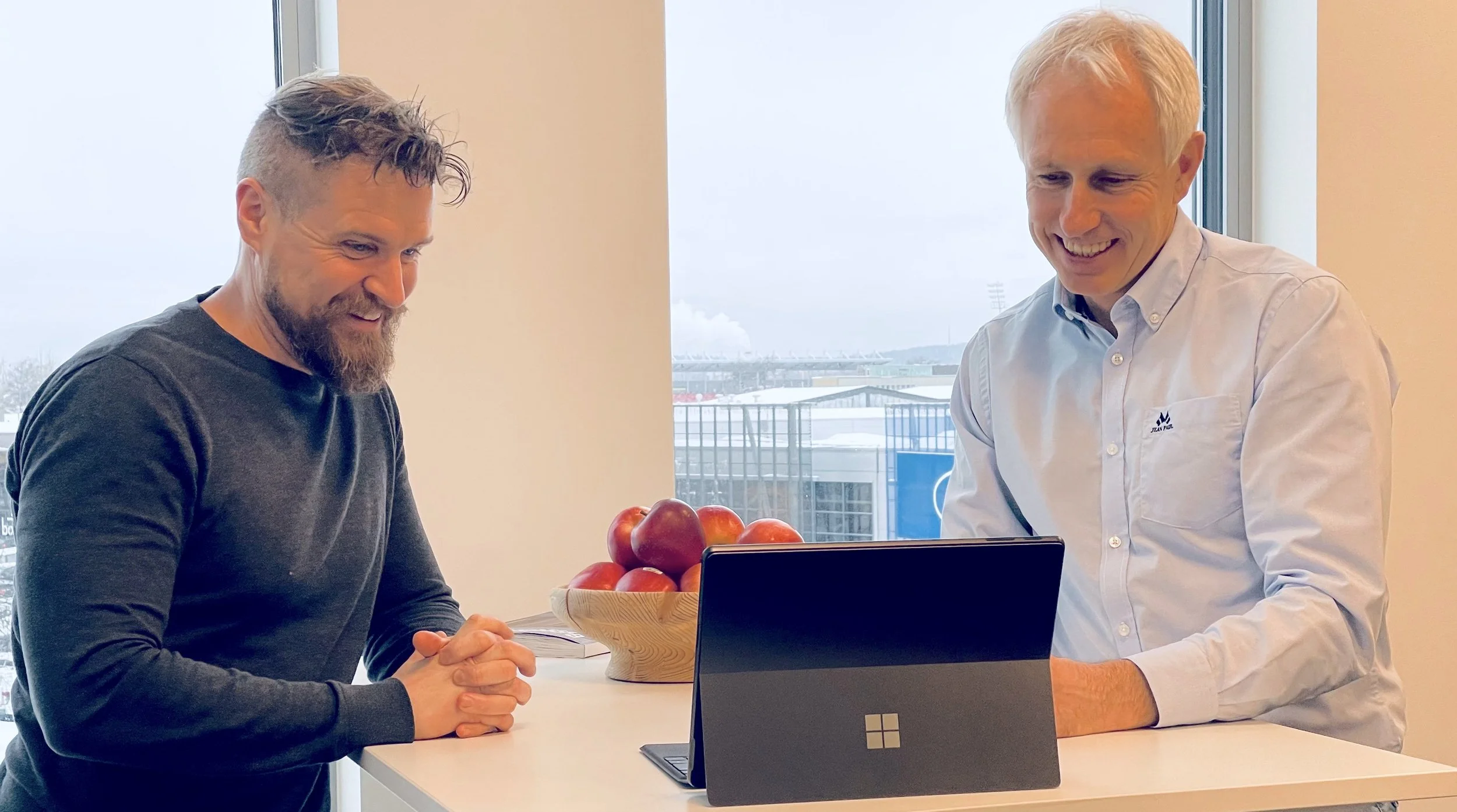 (Bildet: Administrerende direktør i EVR, Vegard Sundby, og energirådgiver og teknisk prosjektleder Jan-Tore Kasbo går i front med en løsning for en rimelig og bekymringsfri inngang til det grønne skiftet - for gårdeiere og byggherrer i hele Norge. Foto: Monique Feilberg Jacobsen)
